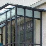 ...Windfang- Abschluss, Windfangverglasung mit Blechornamenten